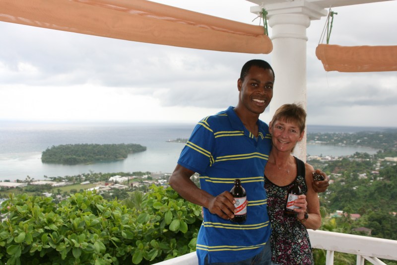 Our Driver Garfield for four days while travelling around Island. View of Port Antonio during the rain. Played Dominos with Garfield and groundskeeper who was at this guesthouse all alone. Garfield said he was lonely and grateful for our company